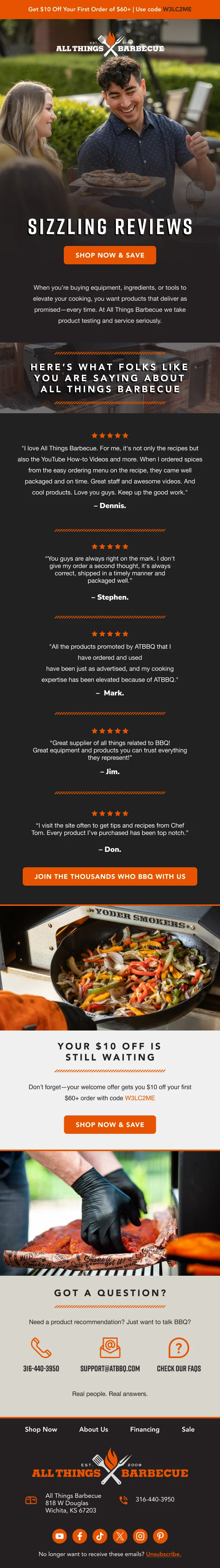 Takeaway: By Email 4, you've told the person about your brand, shown them products, and given them an offer. If they still haven't bought, what they need is trust. Other customers' words do that better than yours.